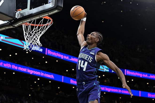 本场比赛中,黄蜂的先发中锋穆萨-迪亚巴特(Moussa Diabate)的表现依然是非常不错的。迪亚巴特全场出场29分04秒,投篮4中2,罚球6中5,得到了9分9篮板6助攻2抢断的准两双数据,其中还包括了4个前场篮板,还有5次犯规,正负值为+11。迪亚巴特在本场比赛中也是展现出了自己全面的才能,他在进攻端抢下了大量的前场篮板,展现出了自己不俗的传球能力和策应能力,他在进攻端还是起到了不小的作用的。迪亚巴特在防守端的表现也是非常突出的,他在篮板保护方面的表现也是值得肯定的,而且他在内线防守方面的效果也是相当不错的,他在移动速度和运动能力方面的优势非常明显,他也能够给对手内线制造不小的威胁。