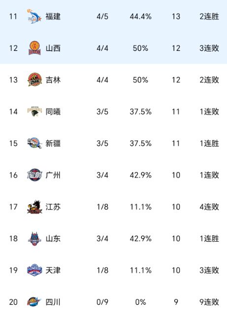 作为昔日总冠军得主,四川队继续连败下去,本轮面对福建队,仅仅打了第一节好球,比分24-24打平,结果后面三节逐渐陷入崩盘,最终88-104惨败,遭遇开局九连败,继续稳居垫底位置。