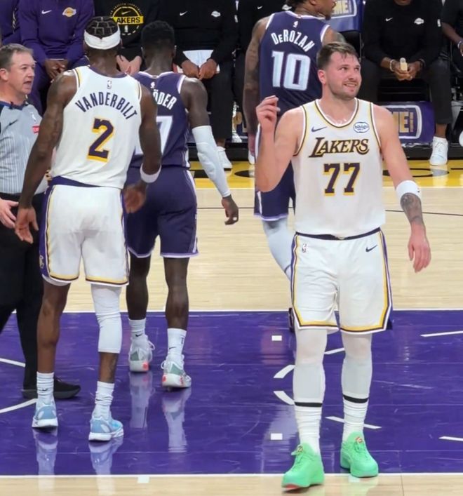 上图是湖人VS国王比赛截图,东契奇的脸再度变成了圆形,他夏天还是有棱有角的脸,手臂上肌肉的线条也已经消失不见了。