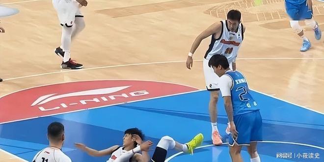 比赛的转折点发生在第二节中段。广东队试图通过提速来挽回劣势,徐杰作为球队的进攻大脑,在一次突破分球的过程中与北京队防守球员发生了剧烈的身体碰撞。慢镜头回放显示,徐杰在落地时脚踝被压,随即痛苦倒地,长时间无法起身。现场队医进场后进行了紧急处理,随后徐杰被队友背出场。徐杰的受伤离场直接导致了广东队攻防体系的崩盘。作为球队唯二的持球强点,他的缺阵让广东队的后场轮转立刻捉襟见肘,胡明轩不得不承担起全部的组织重任,但这恰恰落入了北京队的防守陷阱。