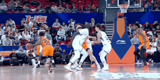 本节末段,大鲨鱼的进攻有所回暖,随着古德温接李弘权的突破上篮打成2+1,大鲨鱼半场以54-37领先17分进入更衣室。