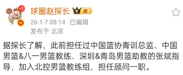 4胜7负的成绩,显然北控男篮主帅张庆鹏目前遭遇了下课危机,不过球队方面暂时还是让他继续担任,不过更换了教练,前中国男篮主帅张斌已经开始坐到了替补席,虽然名义上是顾问,但很明显这个时候加入,就是张庆鹏的备胎。