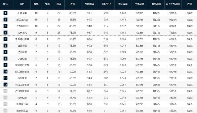 广东男篮虽然也是缺兵少将,但是依靠奎因、萨姆纳、徐杰、萨林杰等核心的支撑,目前还是取得10胜2负的成绩,稳居联赛第三的位置。再加上杜润旺火线复出,广东男篮外线增加一个火力点,杜锋指导的战术体系也变得更加灵活。其他球队方面,青岛男篮因为外援轮换不足,输掉了两场关键比赛,北控男篮目前则是内部动荡很严重,主教练张庆鹏已经到了下课边缘,而辽宁、浙江、山东这几支球队有着明显复苏的迹象,作为联赛的老牌劲旅,他们还是展现出八强级别球队的竞争力。