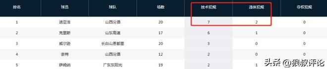 迪亚洛连续3战吃T领跑技犯榜单:累计7技犯再吃1T将追加停赛