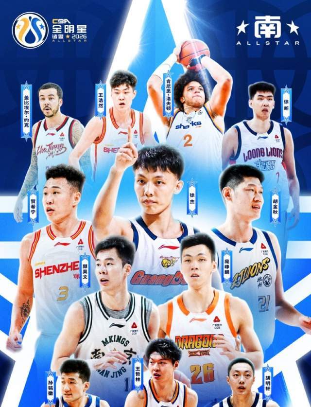 CBA全明星完整名单正式出炉,由于外援和本土球员平衡的问题,很多球员也注定要遗珠行列。入选南区全明星的球员为:(首发)贺希宁、胡金秋、郭昊文、徐杰、庞峥麟,(替补):王浩然、孙铭徽、胡明轩、徐昕、洛夫顿、王哲林、约克。入选北方全明星的球员为:(首发)曾凡博、齐麟、付豪、赵睿、廖三宁;(替补)周琦、段昂君、高诗岩、克里斯、迪亚洛、林庭谦、赵继伟。值得一提的是,宁波、吉林、福建、四川这四支球队没有球员入选正赛名单,而王浩然、徐昕、约克、郭昊文、庞峥麟;廖三宁、段昂君、克里斯这八名球员都是生涯首次打全明星正赛。