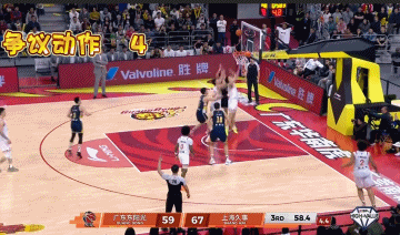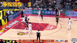 首节比赛打到4分钟左右,古德温持球推进遭到了广东小将陈家政的紧逼防守犯规。