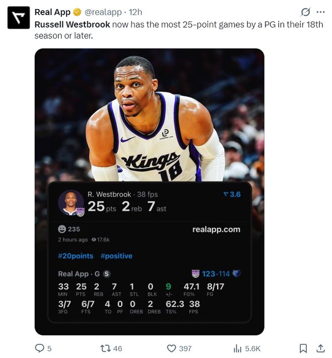 根据数据媒体的统计,威少在联盟打了18个赛季,他已经是NBA历史上拿下25+得分最多的控球后卫。