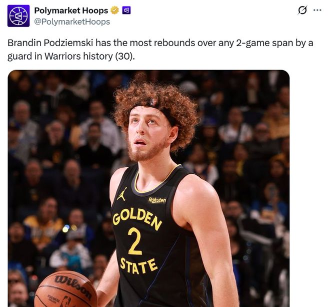 单场抓下15个篮板球追平其生涯新高,过去两场波杰已经抓下30个篮板球,创造勇士队史后卫连续两场篮板总数纪录。
