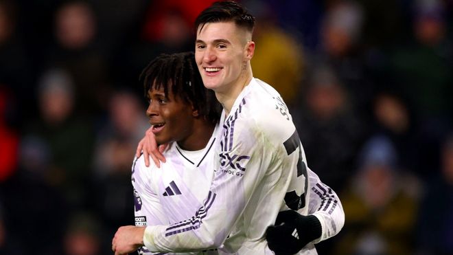 8500万欧元加盟的舍什科5分钟内上演梅开二度的好戏,他和队友兴奋庆祝,场边的弗莱彻也是频频点头。