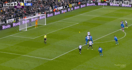 第90+11分钟,绝杀,哈维-巴恩斯破门杀死比赛,纽卡4-3利兹联