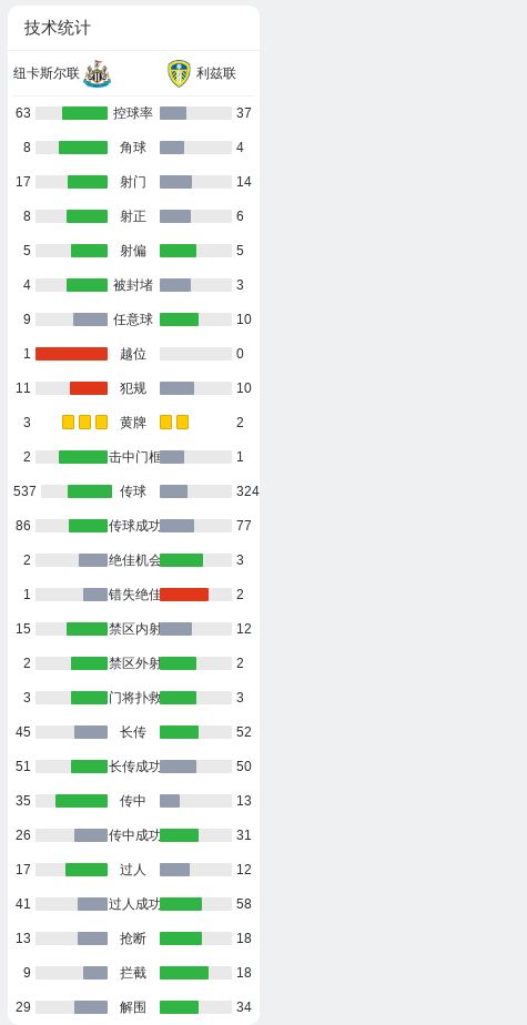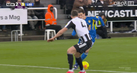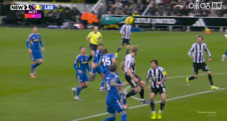 第54分钟,吉马良斯传中,乔林顿甩头攻门扳平比分,纽卡2-2利兹联