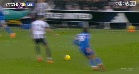 第45+5分钟,佳夫手球送点,勒温主罚点球命中,利兹联2-1纽卡